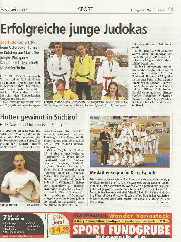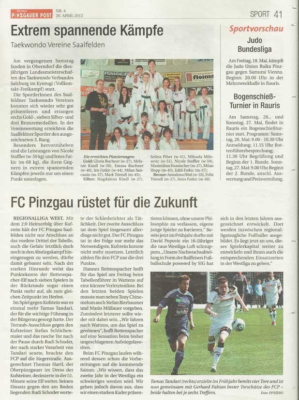 Taekwondo Verein Saalfelden ist Salzburger Landesmeister 2011 Am 21. April 2012 fanden in Oberndorf die diesjährigen